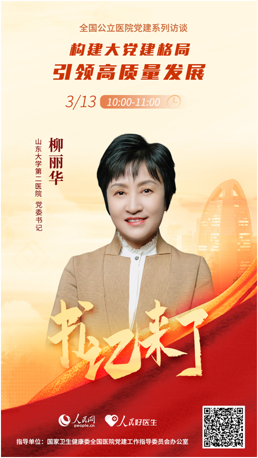 加強(qiáng)學(xué)科建設(shè),提升患者就醫(yī)滿意度是公立醫(yī)院高質(zhì)量發(fā)展的一個(gè)重要維度。如何通過(guò)高質(zhì)量黨建引領(lǐng)醫(yī)院學(xué)科建設(shè),滿足患者的疾病臨床需求,提升診療能力和服務(wù)水平?3月13日10:00,山東大學(xué)第二醫(yī)院黨委書(shū)記柳麗華將做客《書(shū)記來(lái)了》,與大家分享醫(yī)院在加強(qiáng)黨建、改善人民群眾就醫(yī)體驗(yàn)等方面的經(jīng)驗(yàn)和做法,敬請(qǐng)關(guān)注。