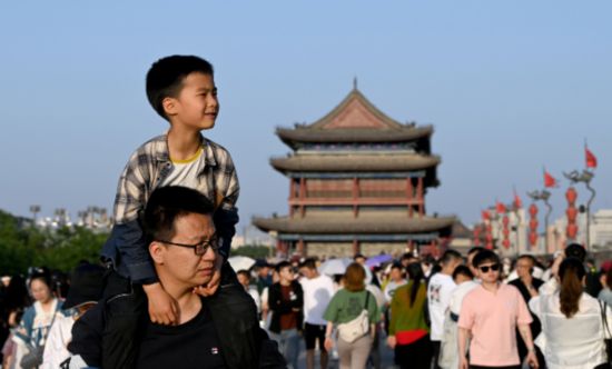 4月30日,游客在西安城墻景區參觀游覽。新華社記者 劉瀟 攝