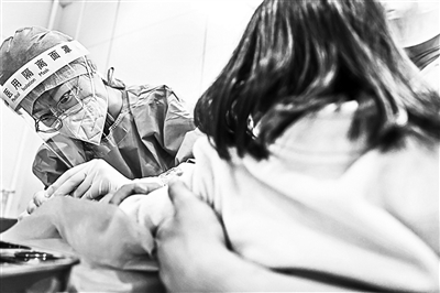 5月9日,北京協和醫院急診科發熱門診護士為一名兒童采指血 供圖/新華社