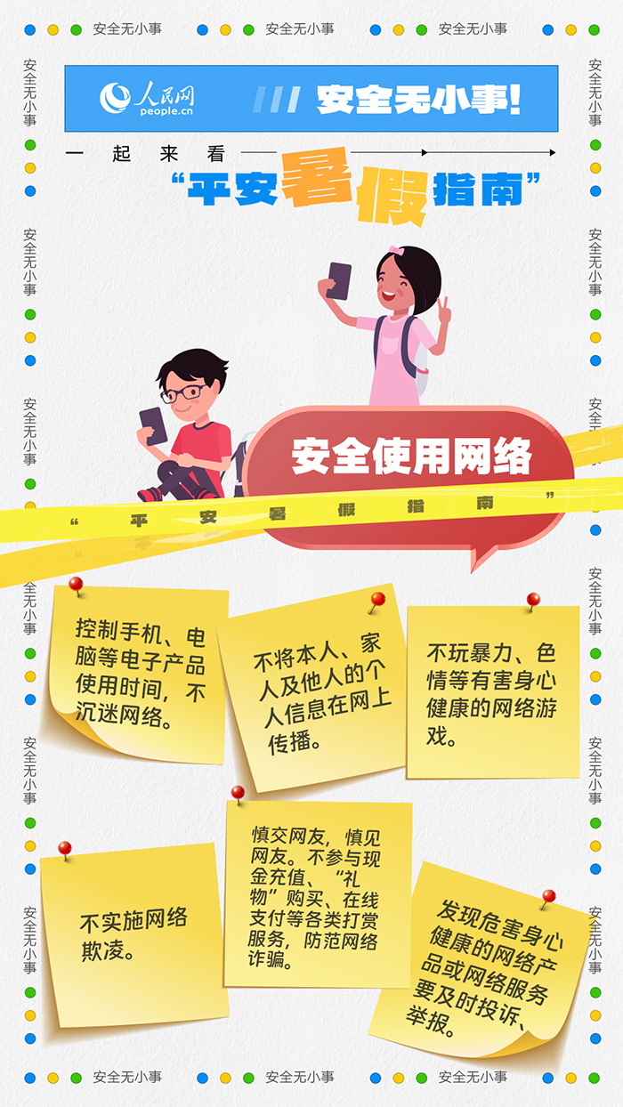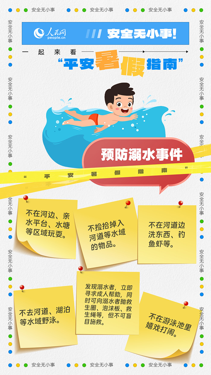 學生放假,暑期安全不能放假。2023年暑假已經到來,居家學習、出門旅行、課外輔導……如何讓孩子度過一個平安、健康、快樂的假期?一起來看“平安暑期指南”,請家長和孩子認真閱讀并牢記!