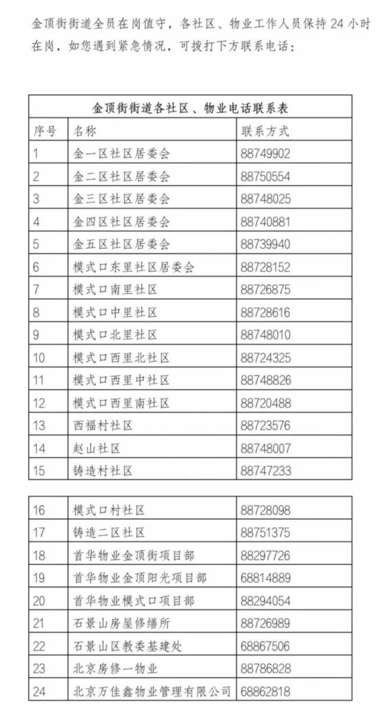 連日來,北京出現暴雨或大暴雨,局地現特大暴雨。各區先后公布了社區、村的聯系方式,遇到緊急情況,可撥打下方電話與工作人員聯系。