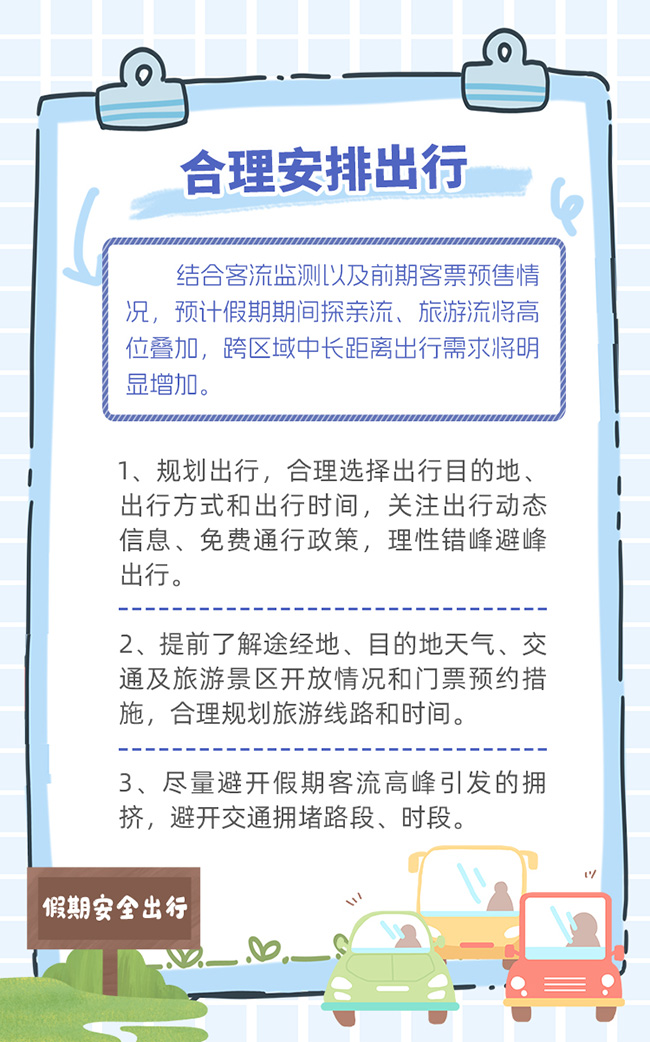 編者按:今年的中秋、國慶“兩節(jié)”假期長達8天,讓大家的出行熱情格外高漲。近日,全國各地陸續(xù)迎來出行高峰,假期外出游玩、走親訪友,一定要做好充分準備、注意出行安全。這份提示請收好!
