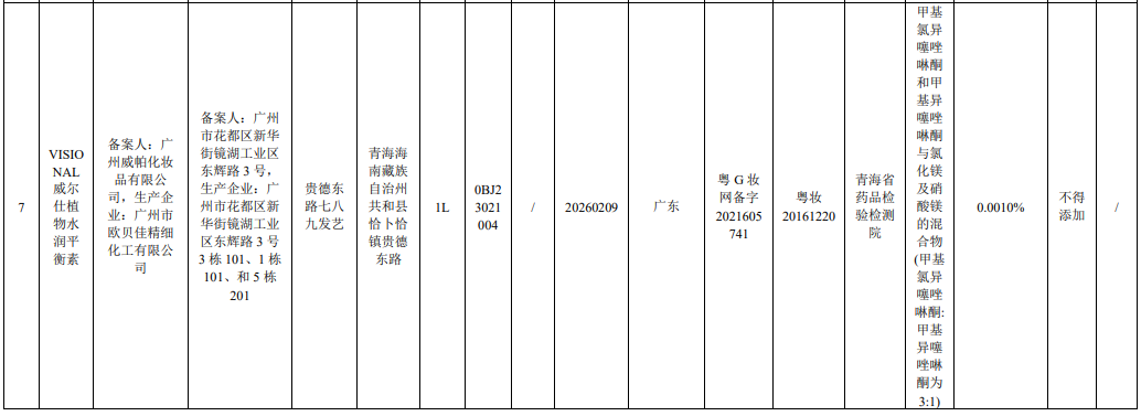 人民網北京10月26日電 (記者孫紅麗)國家藥監局網站26日發布通告,公布7批次化妝品檢出禁用原料,標示名稱分別是幻臻水性彩色指甲油HZ088、幻臻水性彩色指甲油HZ056、unna美甲功能膠加固膠、unna美甲功能膠底膠、貝比拉比蛋黃油、嬰貝萱嬰膚霜、VISIONAL威爾仕植物水潤平衡素。