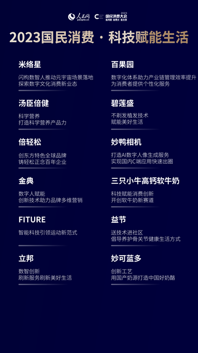 11月22日,由人民網主辦的主題為“新周期·新需求·新發展”的2023國民消費大會在北京舉辦。在2023國民消費創新案例發布環節,包括政策引導賦能、主題特色消費、綠色低碳消費、科技賦能生活、產業迭代創新、影響力品牌、口碑產品、消費風尚引領等八個類別的案例正式揭曉。現將案例名單予以公布。