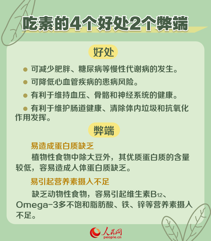 11月25日是國際素食日。近年來,越來越多的人選擇素食。深圳市龍華區(qū)人民醫(yī)院臨床營養(yǎng)科主任醫(yī)師劉曉軍在接受人民網(wǎng)記者采訪時(shí)介紹,吃素雖然能帶來諸多好處,但一味吃素并不能讓身體更健康。吃素更要講究均衡膳食、科學(xué)搭配。