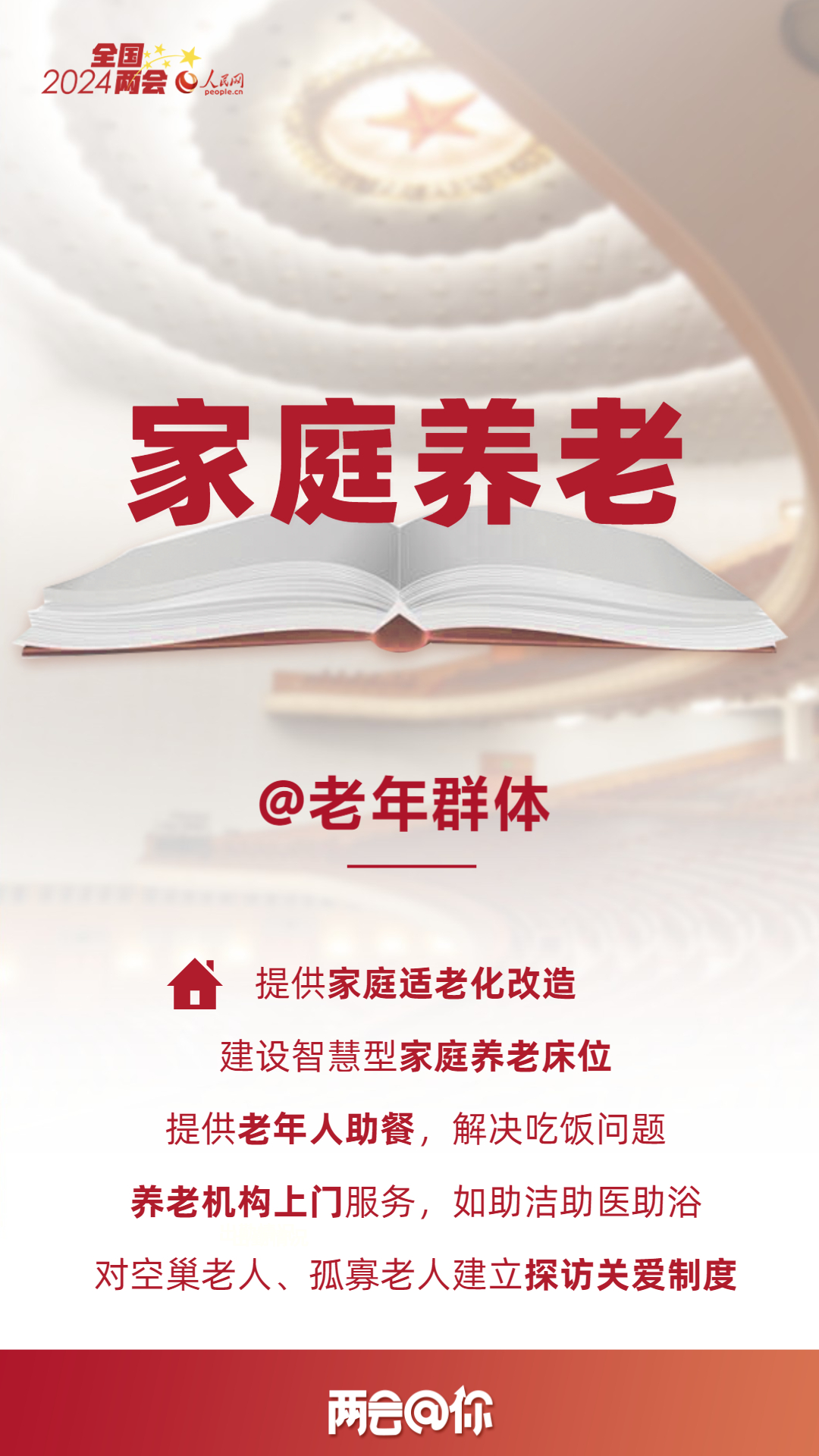 編者按:家家有老人,人人都會老。如何讓老年人健康幸福地安度晚年,是一道現實課題。推動“養老”向“享老”轉變,今年全國兩會釋放了哪些利好?本期“兩會@你”,為您梳理養老政策“紅包”。