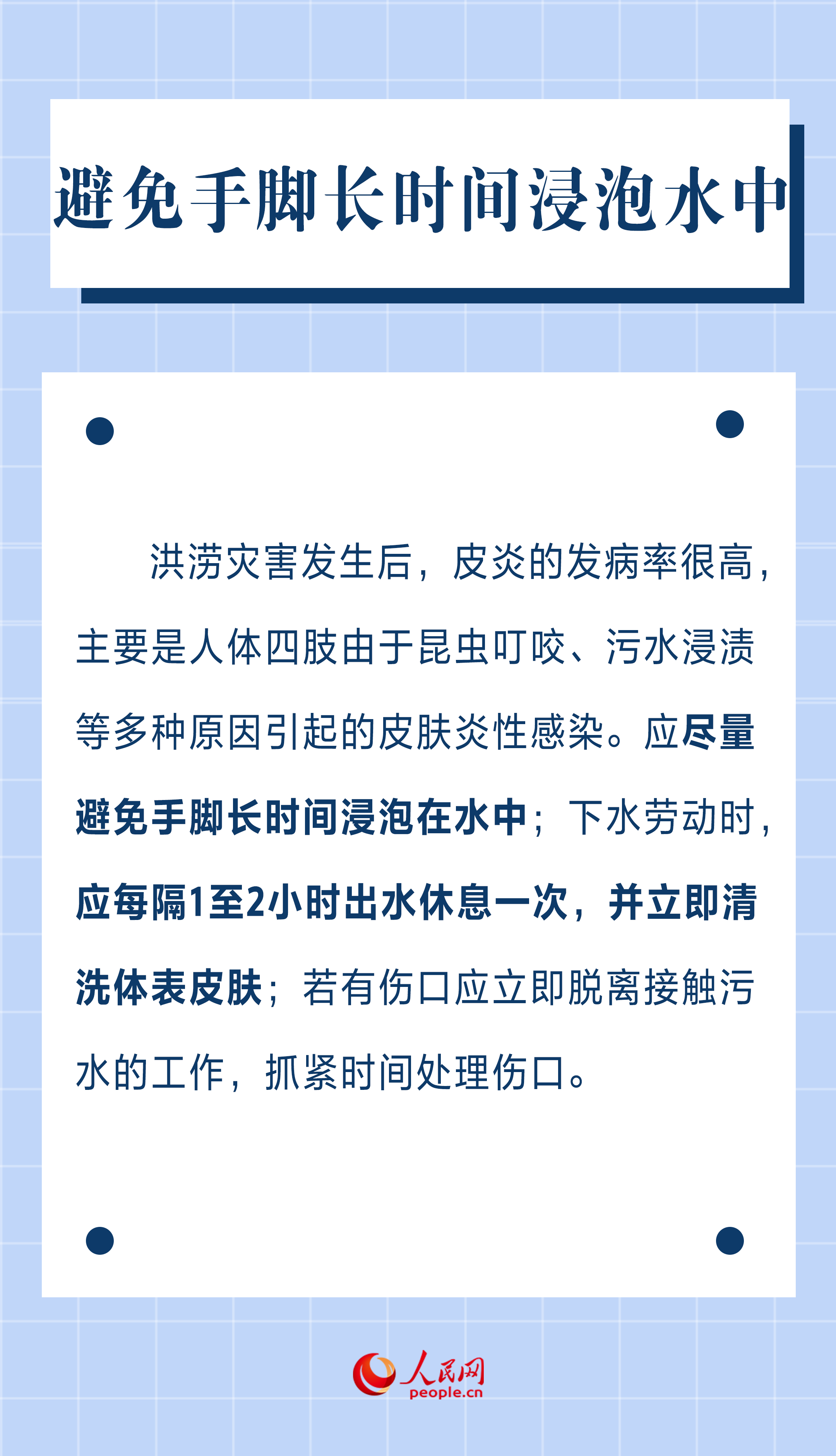 近期,南方多地持續出現強降雨,廣東、福建等地發生洪澇和地質災害。“洪澇災害后,容易發生各種傳染病,特別是腸道傳染病、蟲媒傳染病和自然疫源性疾病等。”中南大學湘雅三醫院感染病科主任醫師劉振國在接受人民網記者采訪時表示,洪澇災害后,健康方面一定要注意以下幾點。