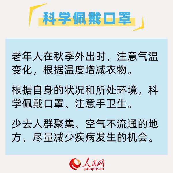 秋季晝夜溫差大,空氣干燥,人體的呼吸系統易受侵襲,容易感染包括流感在內的呼吸道傳染病。老年人作為呼吸道傳染病防控的重點人群,需要做好哪些措施?為此,人民網采訪了成都市中西醫結合醫院北區呼吸內科主治醫師吳季。