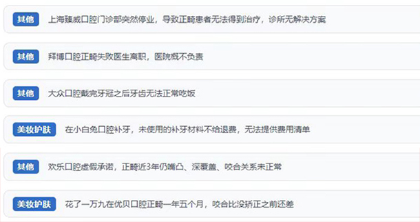 “花了1.9萬元正畸了一年五個月,到現(xiàn)在咬合比矯正前更差”“戴完牙冠后,牙齦一直出血導致我無法正常吃飯,機構不給解決問題”“我花了3000元補牙,包含材料費395元,補完牙后才得知并未使用該材料”……在人民網(wǎng)“人民投訴”平臺上,不少用戶道出了口腔治療消費的“心酸”經(jīng)歷。