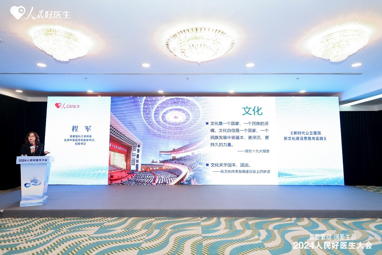 首都醫科大學附屬北京中醫醫院黨委副書記、紀委書記程軍在發言中表示,公立醫院的新文化建設,尤其是建設特色鮮明的醫院文化對醫院發展至關重要。在新時代新文化的要求下,“四性兩力”——包括公益性、人民性、人文性、傳承性,軟實力和核心競爭力是當下的重中之重。