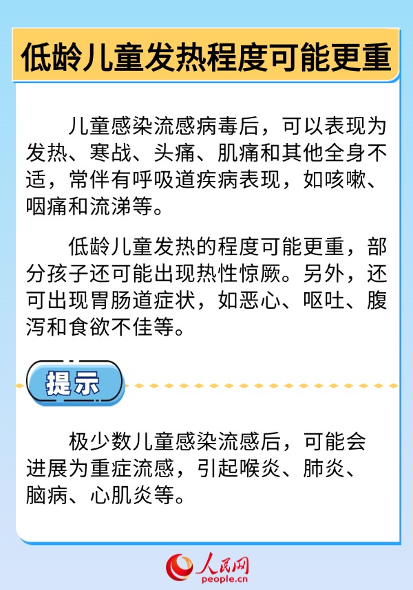 當前是兒童呼吸道感染性疾病的高發期,病原體仍以病毒和肺炎支原體為主,病毒主要以流感病毒為主。河南省兒童醫院內科監護室副主任醫師蘇軍、檢驗科主管檢驗師解海珍在接受人民網采訪時介紹,兒童和成人感染流感病毒后,癥狀、治療和并發癥會有顯著差異。以下內容,能幫助家長更好認識和正確應對流感。