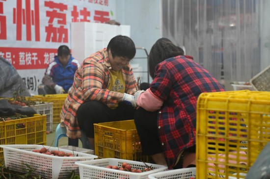 6月18日,果農在廣東茂名高州的一個冷庫中打包荔枝。新華社記者 肖恩楠 攝