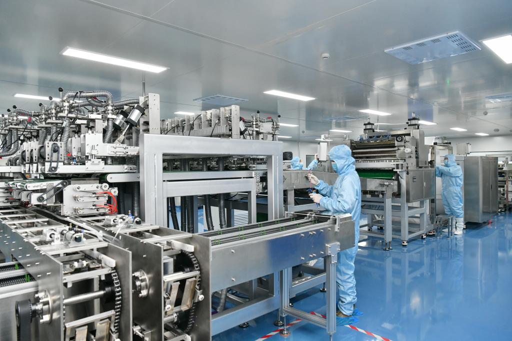 2025年6月5日,河北省一家藥品生產(chǎn)企業(yè)的員工在調(diào)試新采購的自動化生產(chǎn)線。新華社記者 牟宇 攝