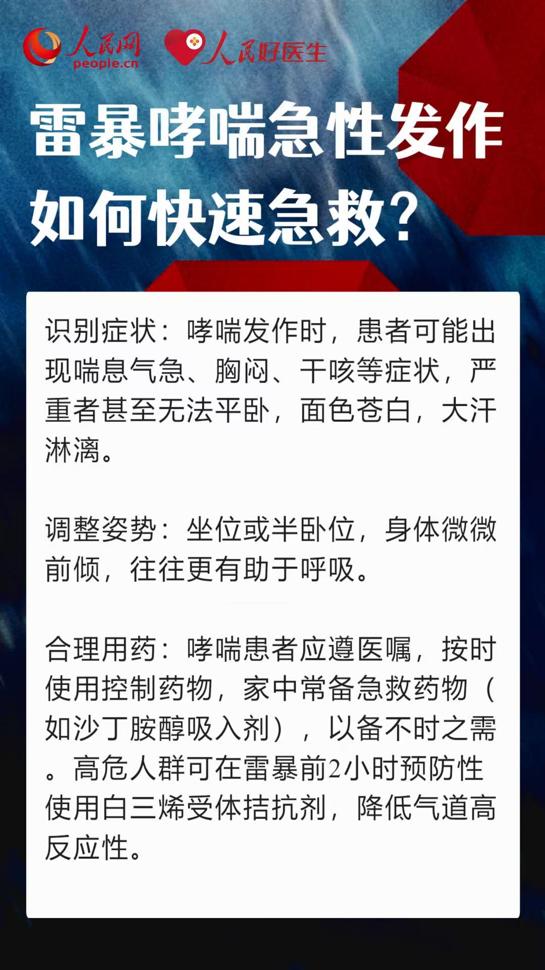 編者按:近期,雷暴天氣頻繁,不少人出現(xiàn)咳嗽、喘憋等癥狀,甚至因此危及生命,醫(yī)院里此類患者明顯增多。醫(yī)生提醒,雷暴哮喘多發(fā)生在暴雨后,是一種在雷暴天氣下出現(xiàn)的哮喘急性發(fā)作現(xiàn)象,與花粉濃度過高有關(guān)。遇到雷暴天氣,公眾需做好防范。