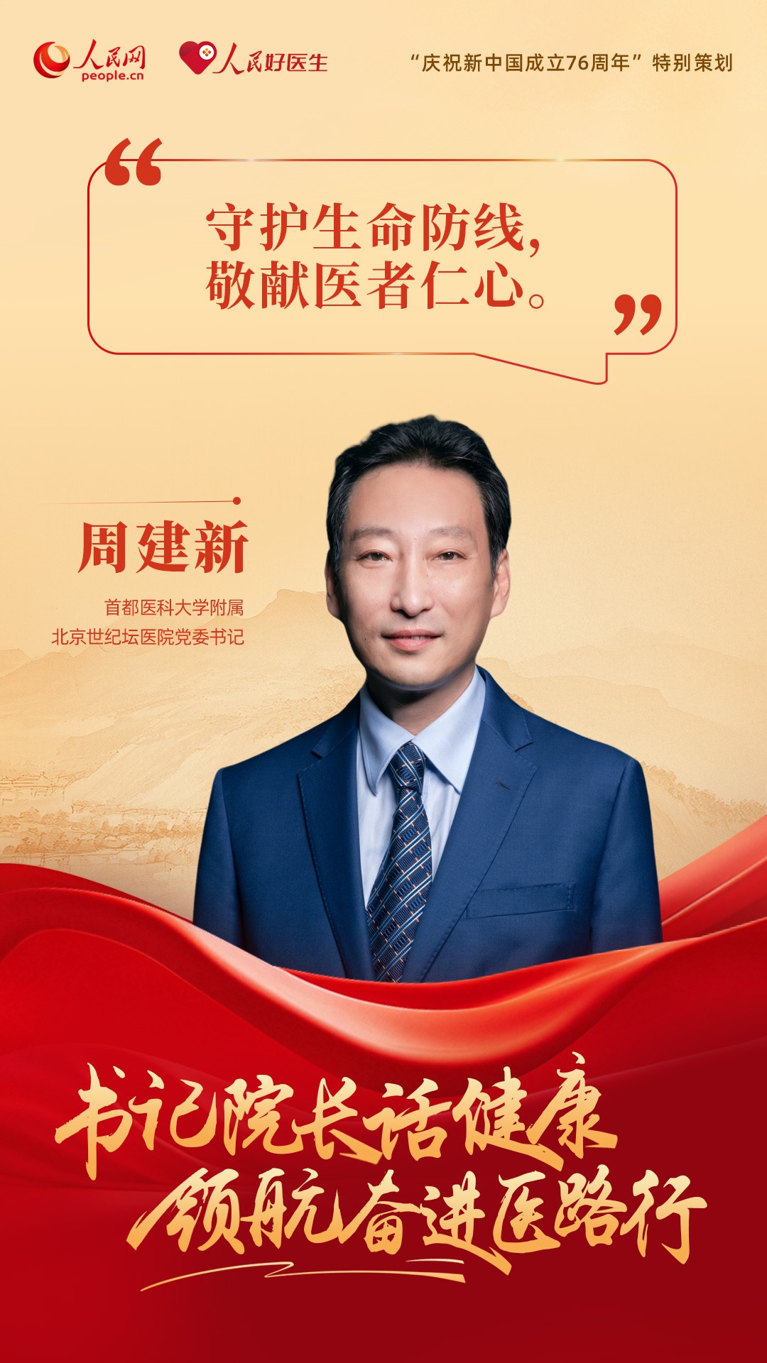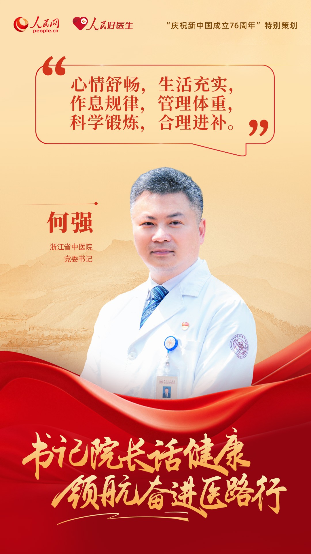 編者按:為了慶祝新中國成立76周年,人民網、人民好醫生客戶端特別推出“書記院長話健康 領航奮進醫路行”策劃,邀請19位全國公立三甲醫院黨委書記與院長分享“醫路”前行中的醫者初心與健康心得。