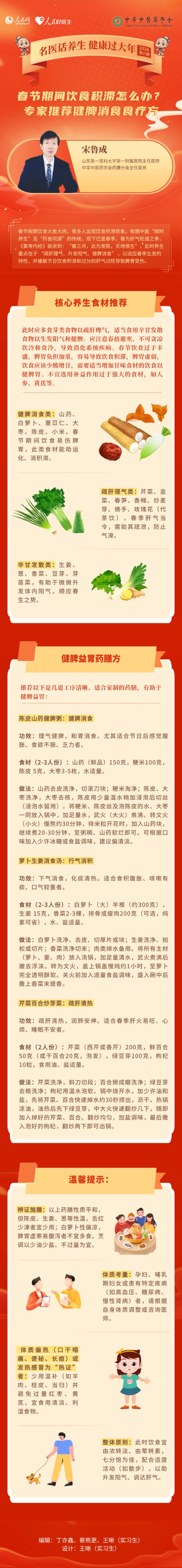 春節,是千家萬戶闔家團圓的日子,而健康幸福是春節最溫馨的底色。為了讓權威實用的養生知識深入人心,讓中醫智慧為健康歡度春節保駕護航,人民網、人民好醫生客戶端與中華中醫藥學會聯合推出《名醫話養生 健康過大年》系列圖解策劃。2026年春節期間,連續8天,中華中醫藥學會8個專業(專科)的國醫大師、分會主任委員、副主任委員等名醫名家圍繞自身專業領域相關話題分享養生秘訣。